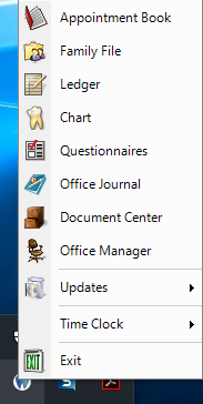 The Dentrix Launcher is a graphical user interface from which you can open the following Dentrix modules: