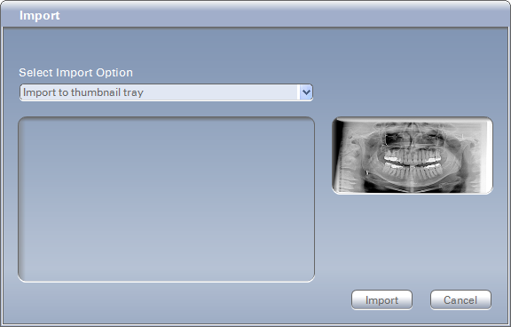· Import to patient - You can import images directly into the Patient’s Record pane.
