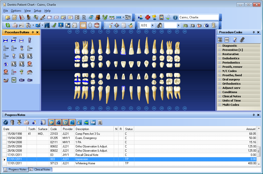 The panel moves to the selected position, and Dentrix re-sizes and positions the remaining panels to account for repositioned one.