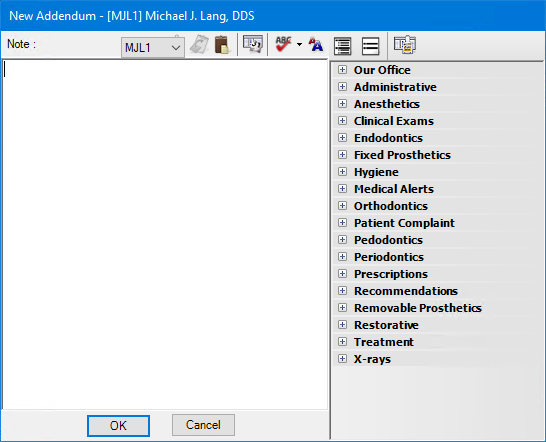 Clinical notes provide you with a method of entering notes for an exam that are not specific to a procedure. Once you sign a clinical note or move it to history, you cannot edit or delete it. However, you may append an addendum to a clinical note in history.