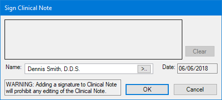 6. Using a mouse, light pen, or other pointing device, sign the note, and then click OK.