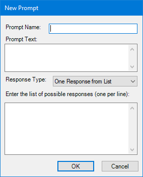 9. Type a list of possible responses in the text box, and then to save the prompt, click OK.