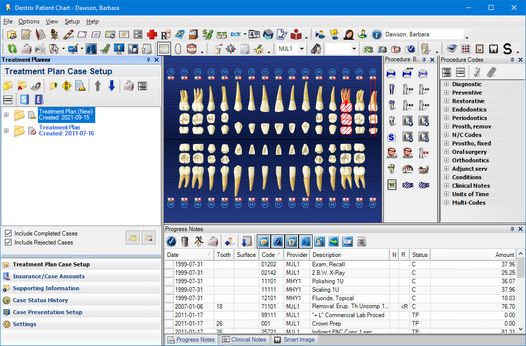 Changing the layout of the Patient Chart to the Treatment Planner displays the Navigation panel of the Treatment Planner. In this layout, you can manage treatment plan cases while the Patient Chart is still open and functioning.