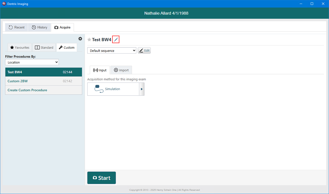 Note: Custom and favorite imaging procedures are location specific.