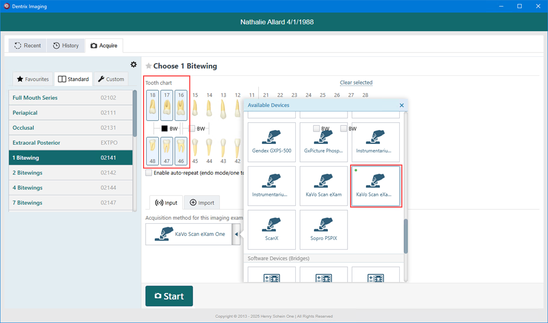 4. In the Acquisition method for this imaging exam menu, click KaVo Scan eXam One.