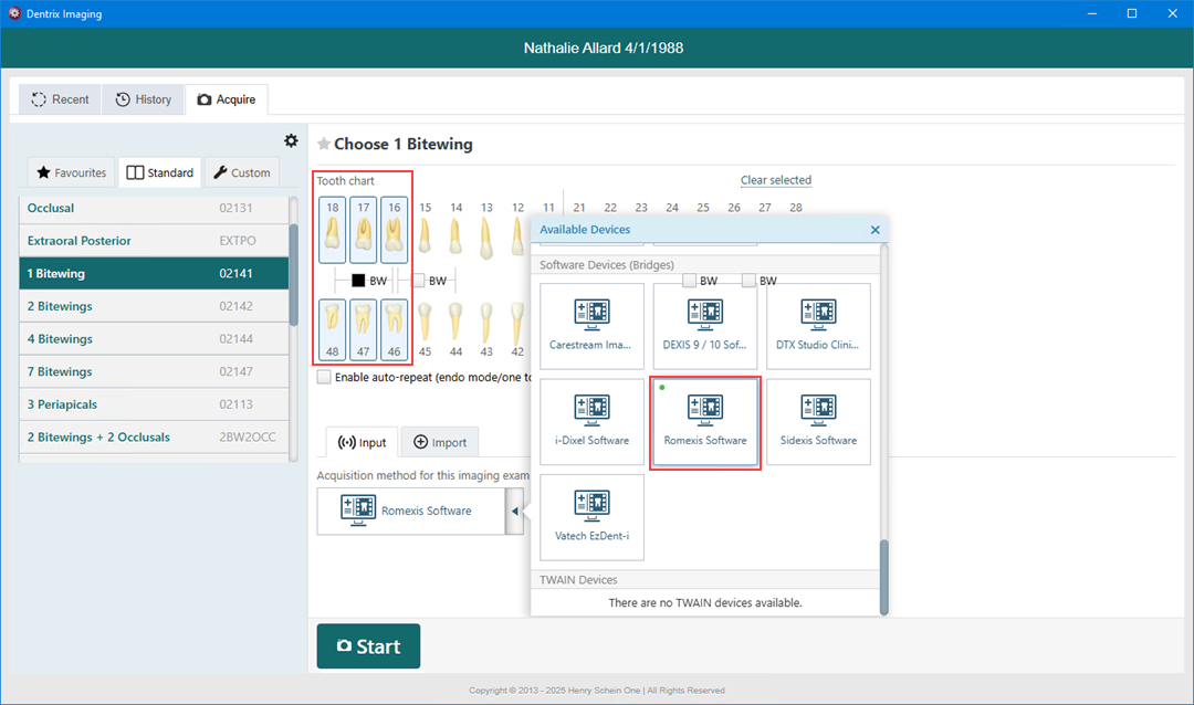 Once the Romexis software bridge is functional, you can test it by acquiring an image.