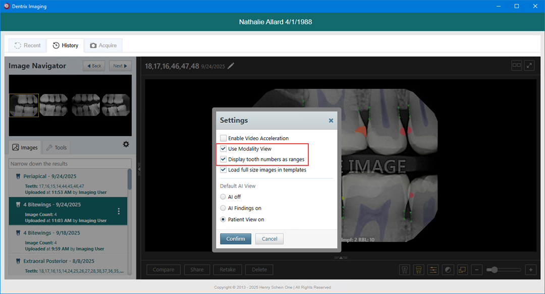 · Tooth chart – To view images for specific teeth, select the desired teeth.