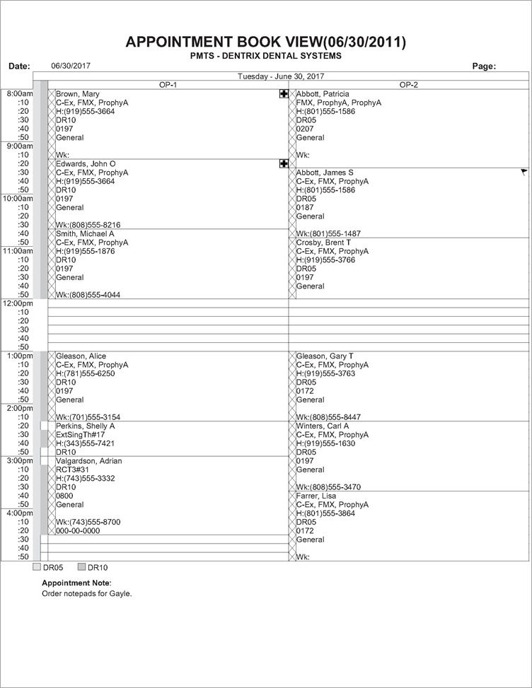 The Appointment Book View printout displays a graphical representation of your appointment schedule.