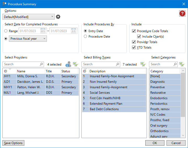 Include Procedures By – Sets options to include procedures by entry date or procedure date.
