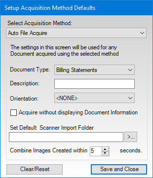 Acquire without displaying Document Information – Select to prevent the Document Information dialog box from appearing.