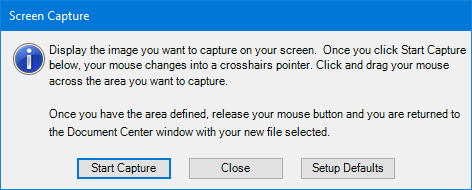 2. To set up the default settings for screen captures, click Setup Defaults.