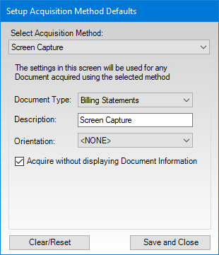 a. Under Select Acquisition Method, select Screen Capture.