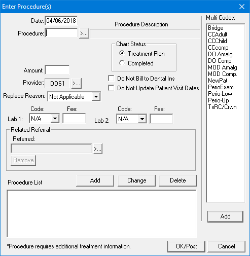 6. Select the procedure from the list in the Treatment Plan dialog box and click OK.