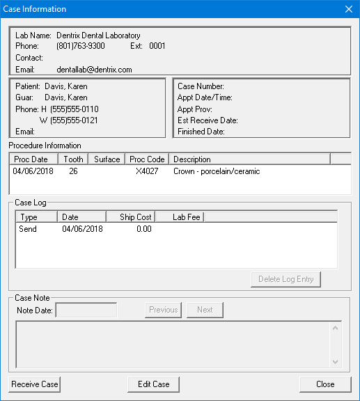 1. From the Lab Case Manager window, double-click the case that you want to view.