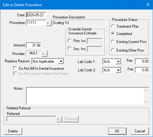 1. With a patient selected in the Ledger, double-click the transaction that you want to add a note to.