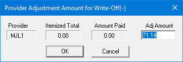The Provider Adjustment Amount for Write-Off (-) dialog box appears.