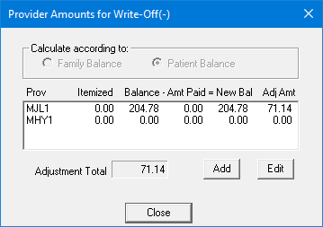 The Provider Amounts for Write-Off (-) dialog box appears.