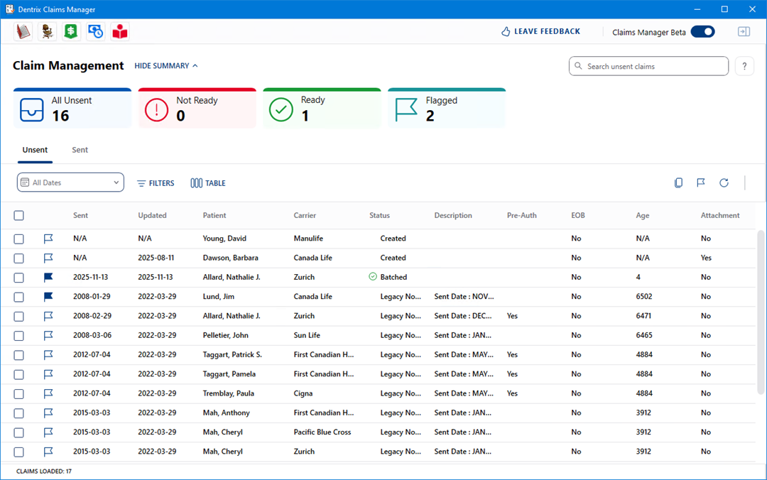 1. To open the Claims Manager, in the Ledger or the Office Manager, click the Claims Manager toolbar button.