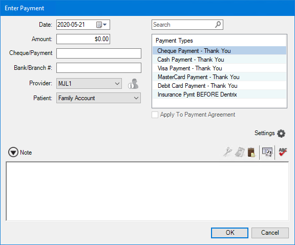 Note – Type a note to document any unusual circumstances related to the payment.