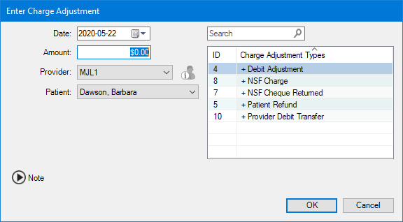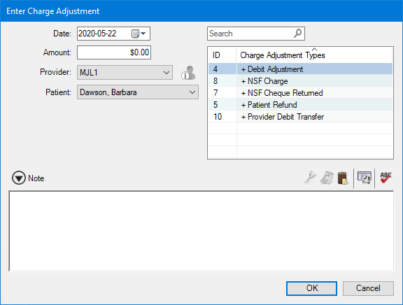 4. To add a note, to clarify or document the charge adjustment, click the Note icon.