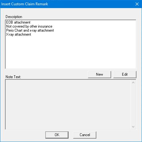 6. Under Description, select the remark that you want to add to the claim and click OK.