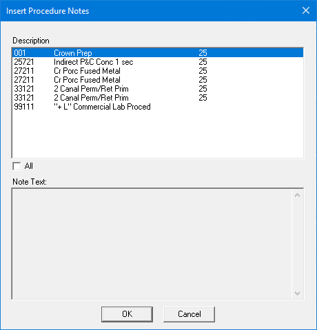 3. To enter pre-written procedure note text, click Notes from Procedures.