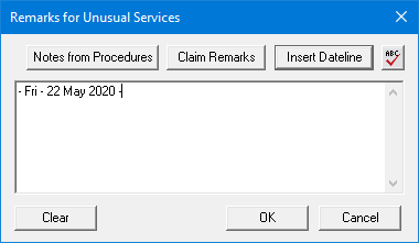 7. From the Remarks for Unusual Services dialog box, click OK.