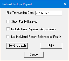 A Patient Ledger Report is very similar to a Family Ledger Report. However, instead of printing procedures for all family members, it prints procedures for the selected patient only. If you want, you can include guarantor payments and adjustments.