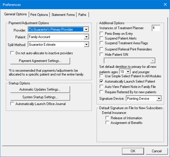 3. From the Payment/Adjustment Options list, you can set the default for payment allocations and adjustments. The following options are available: