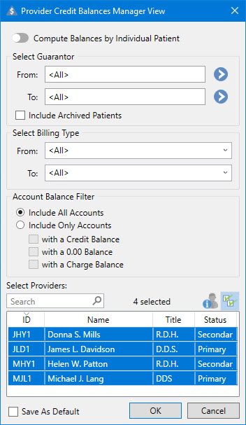 2. To open the Provider Credit Balances Manager with the default settings, click OK.