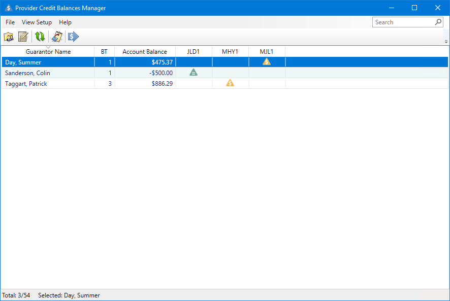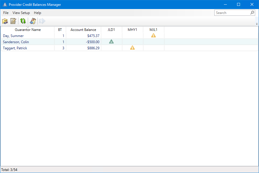 The Provider Credit Balances Manager View dialog box appears.
