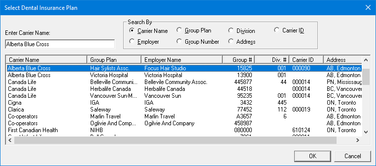 6. Select the appropriate insurance carrier from the list, and then click OK.