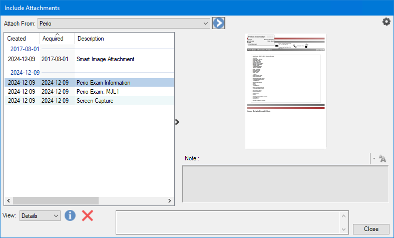 3. In the Attach From list, select Perio, and then click the Chevron icon.