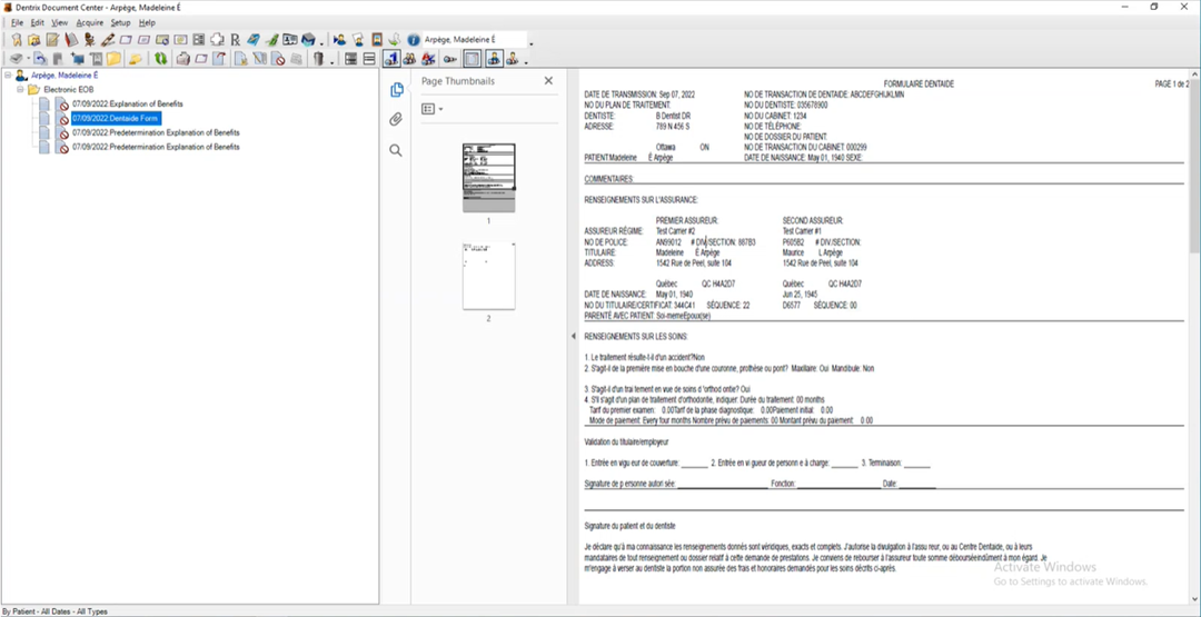 The Primary Dental Insurance Claim window appears.