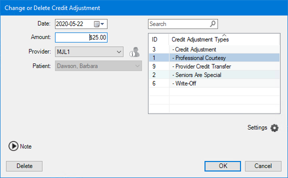 Delete - Click to delete the adjustment.