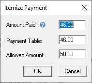 3. To update the itemized payment or estimate, type an amount in the Amount Paid field, and then click OK.