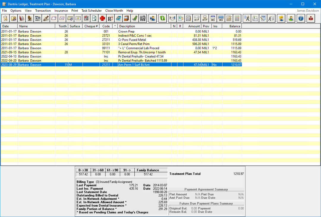 Tip: Using Dentrix, you can assign a different background colour to the Treatment Plan view, making it easy to distinguish between the Ledger and Treatment Plan views.