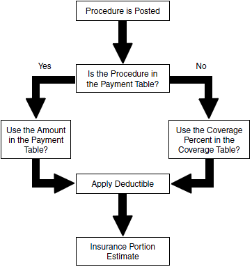 If the procedure is in the payment table, the following formula applies: Insurance Portion = Payment Table Amount – (Deductible x Coverage Table Percent)