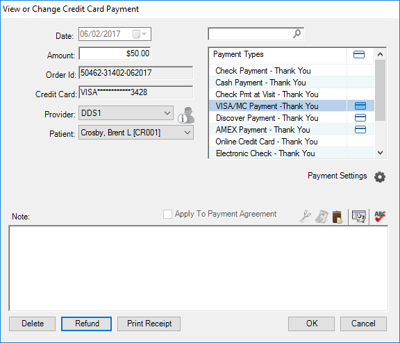 Refunding a payment returns the money to the cardholder after the nightly batch has processed. You can only refund credit card payments after the merchant account batch closes at 10:00 PM local time to your practice.
