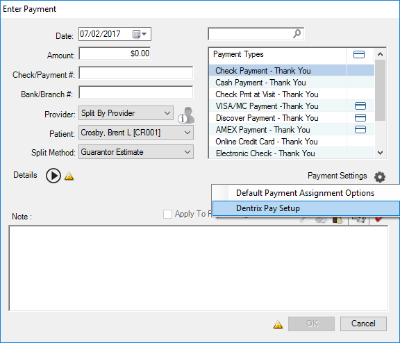 To set up Dentrix Pay