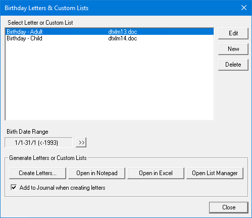 Note: Alternately, if you are sure that the information in your database is complete (addresses, for example), you can click Create Letters and create your letters immediately. If, however, you click Open List Manager, you can choose not to send a letter to patients for whom you do not have a current address.