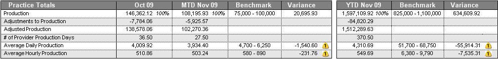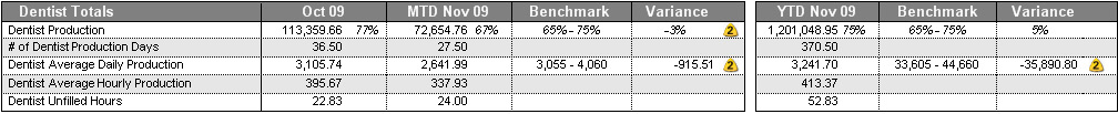 The Dentist Average Daily Production is the Production divided by the # of Dentist Production Days within a given date range.
