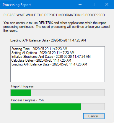 Note: The report may take a long time to generate, but you can continue working in Dentrix during the process.
