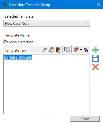 The Case Note Template Setup dialog box appears.