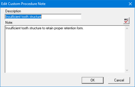 You can set up a library of custom notes in Dentrix. These notes serve as templates that you can draw from. You can use the text of any note without changing it or customize it as needed, depending on the situation for which you are adding a note.