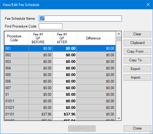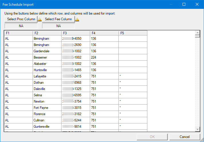 Note: If the file does not match the Dentrix Fee Schedule Export format, the Select Proc Column and the Select Fee Column buttons are enabled, so you can manually select the Proc and Fee columns for import.