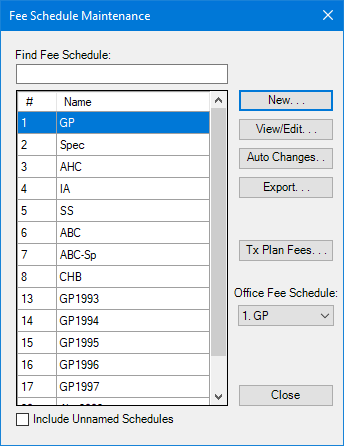 1. From the Maintenance menu in the Office Manager, point to Reference, and then click Fee Schedule Maintenance.