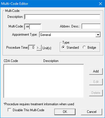 8. When you have finished adding procedure codes, click OK to close the Multi-Code Editor dialog box and save the multi-code you created.