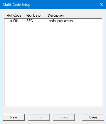 1. From the Maintenance menu in the Office Manager, point to Practice Setup, and then click Multi-Code Setup.