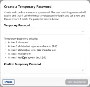 5. Under Confirm Temporary Password, re-type the temporary password, and then click Reset Password.